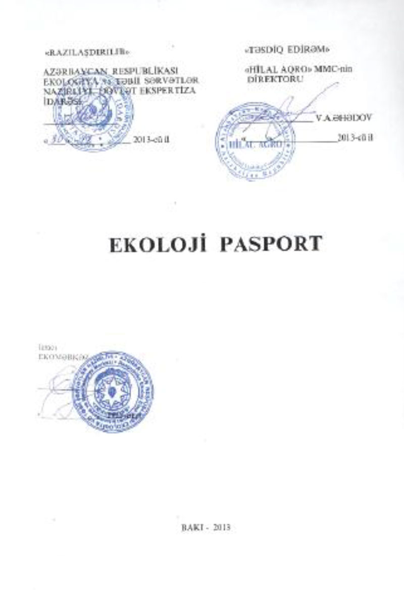 Certificate of Conformity of Ecology by Ministry of Azerbaijan